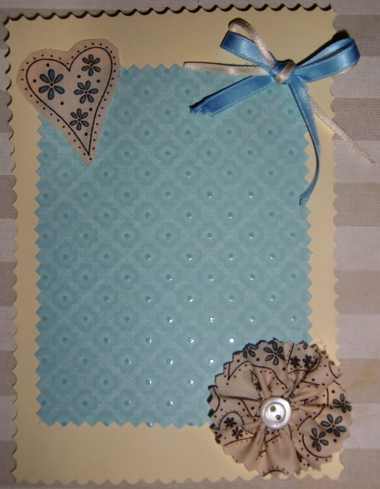 Infine, per il battesimo del piccolo Daniele, ecco alcuni bigliettini che ho preparato, sempre con la tecnica dello scrapbooking, che mi consente di non buttare via nulla, nemmeno quei pezzettini di stoffa e nastro che altrimenti non servono a nulla.